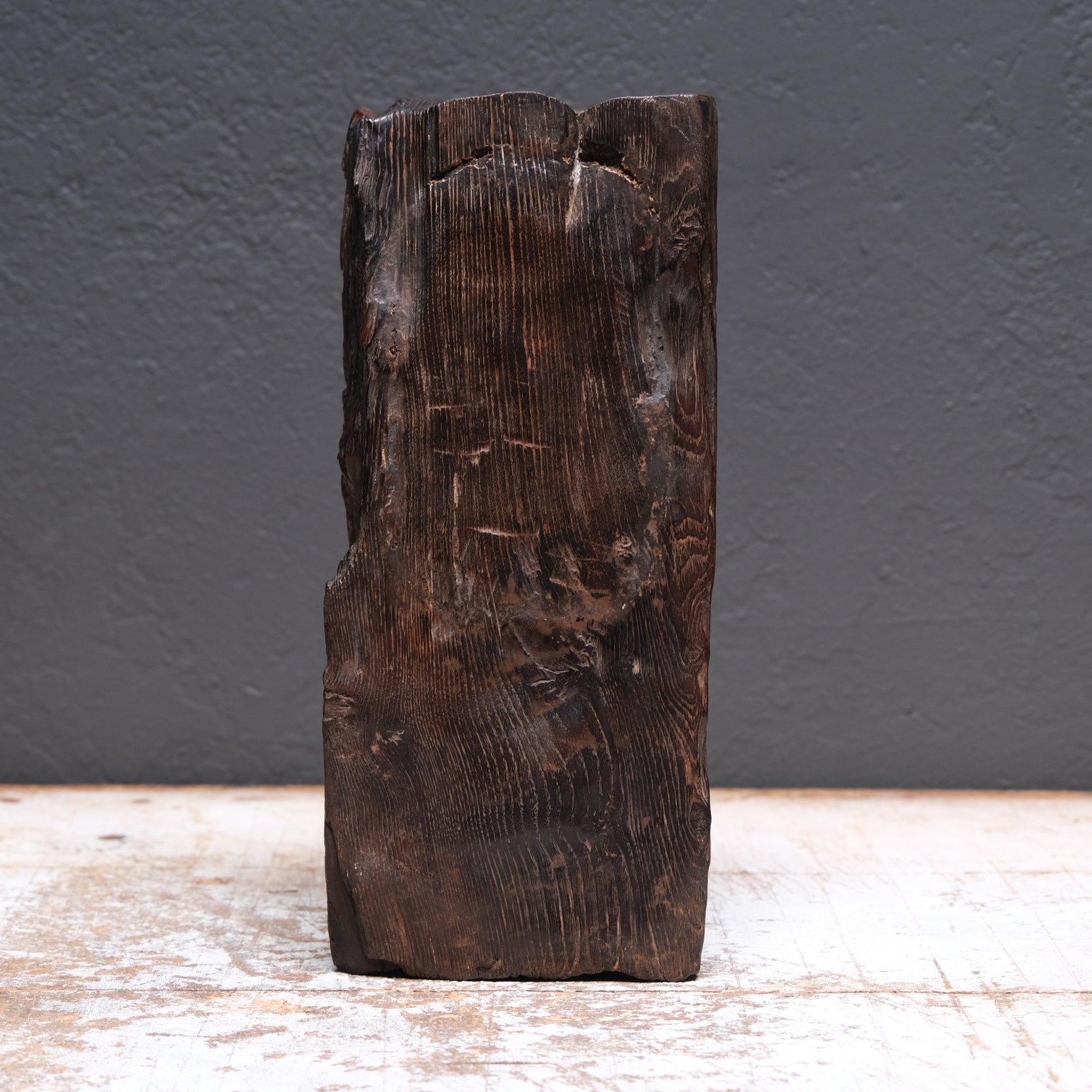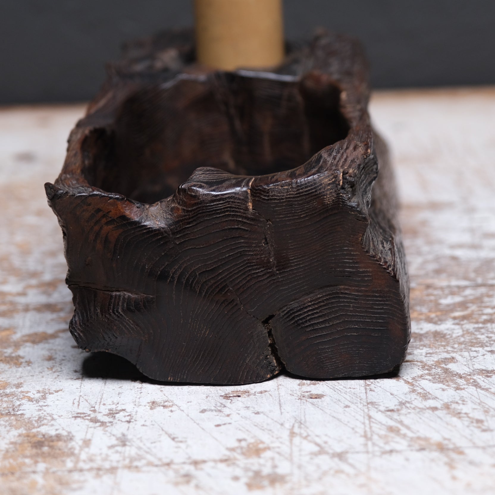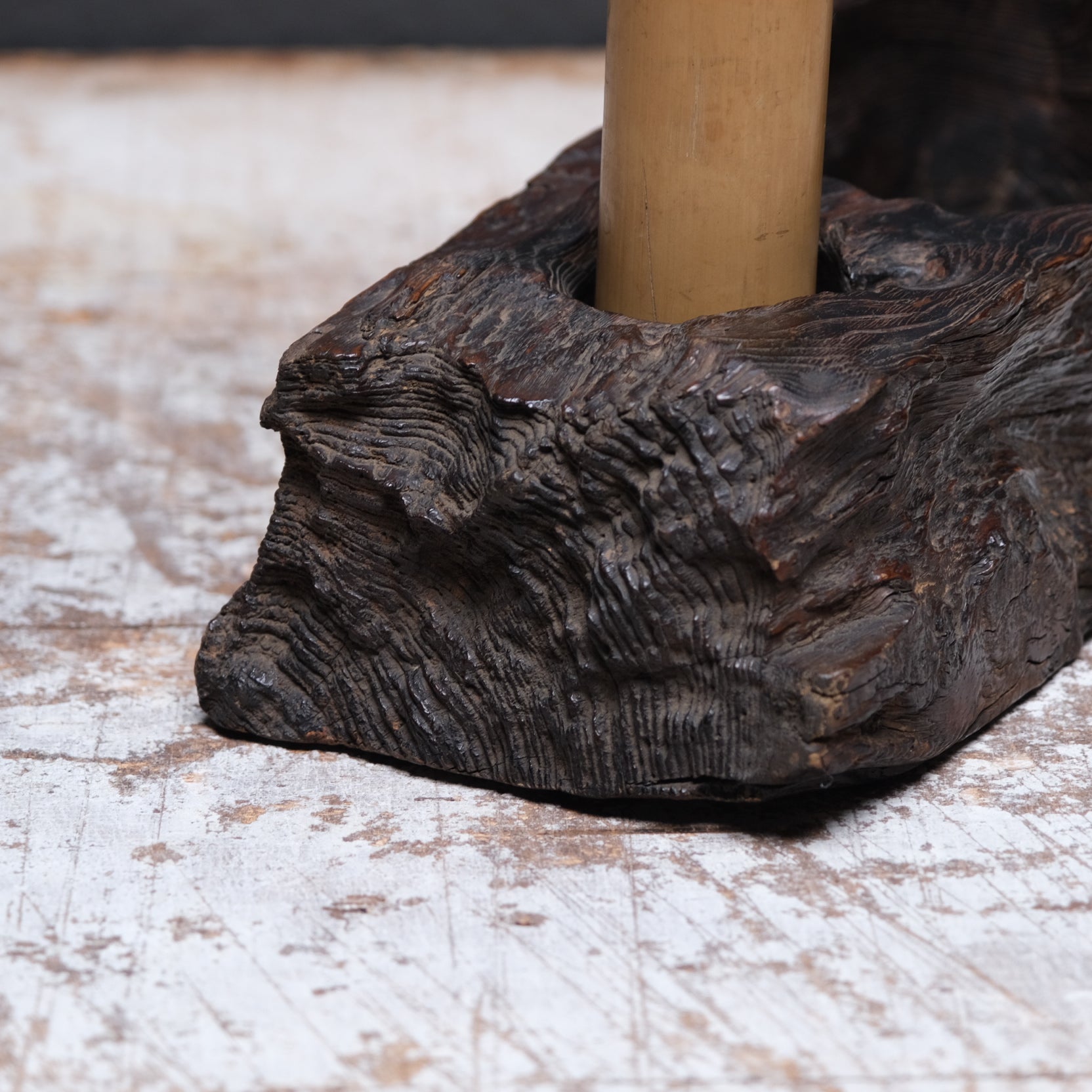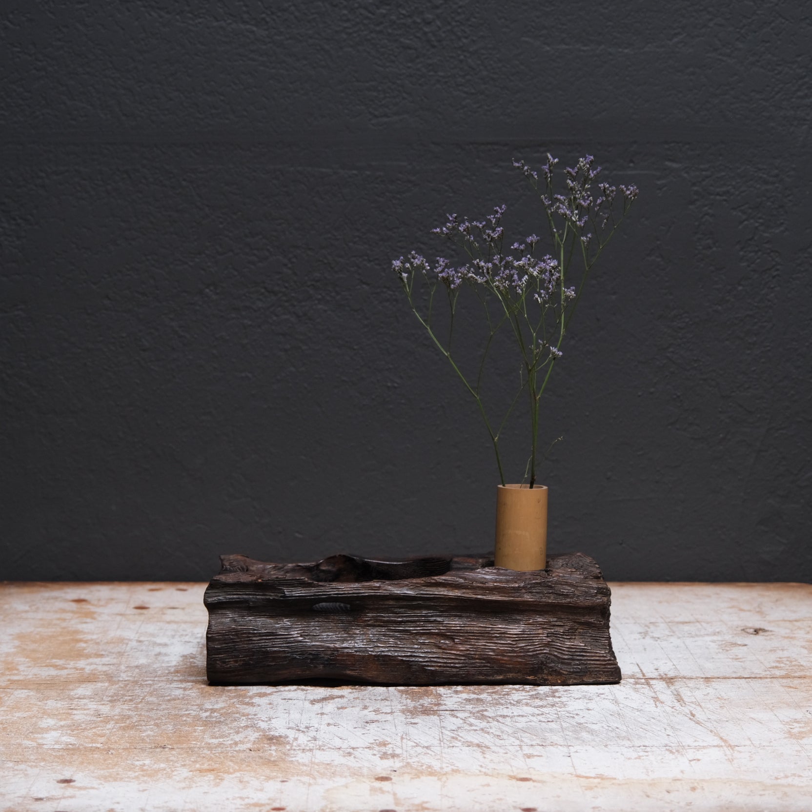 Wooden tobacco tray converted to flower vase with bamboo insert.
