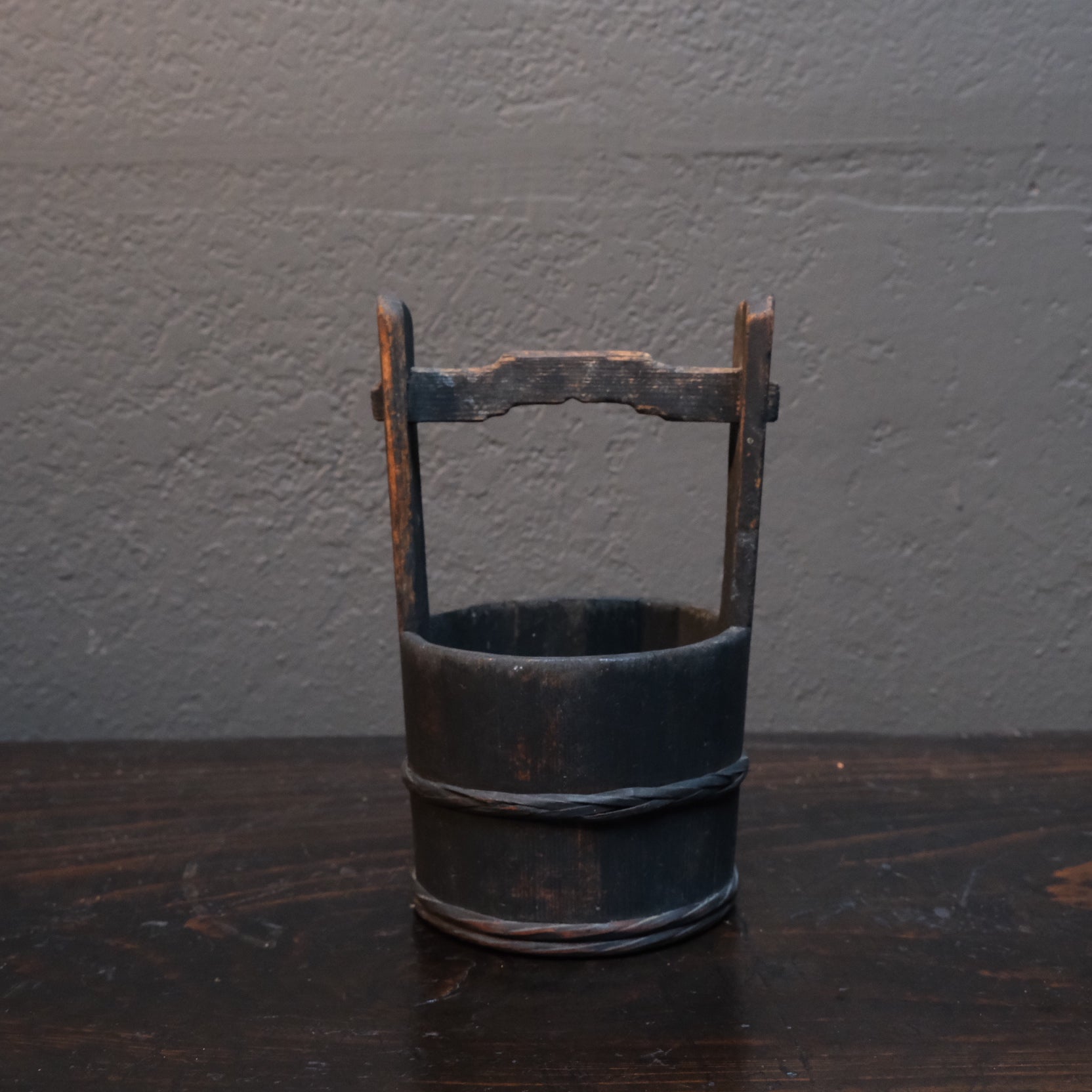 A small, sturdy Japanese mizuoke (water bucket) made for everyday use in storing and carrying water. With its simple construction and utilitarian form, the piece reflects the humble character of Edo-period folk wares, where practicality was balanced with a quiet sense of beauty.