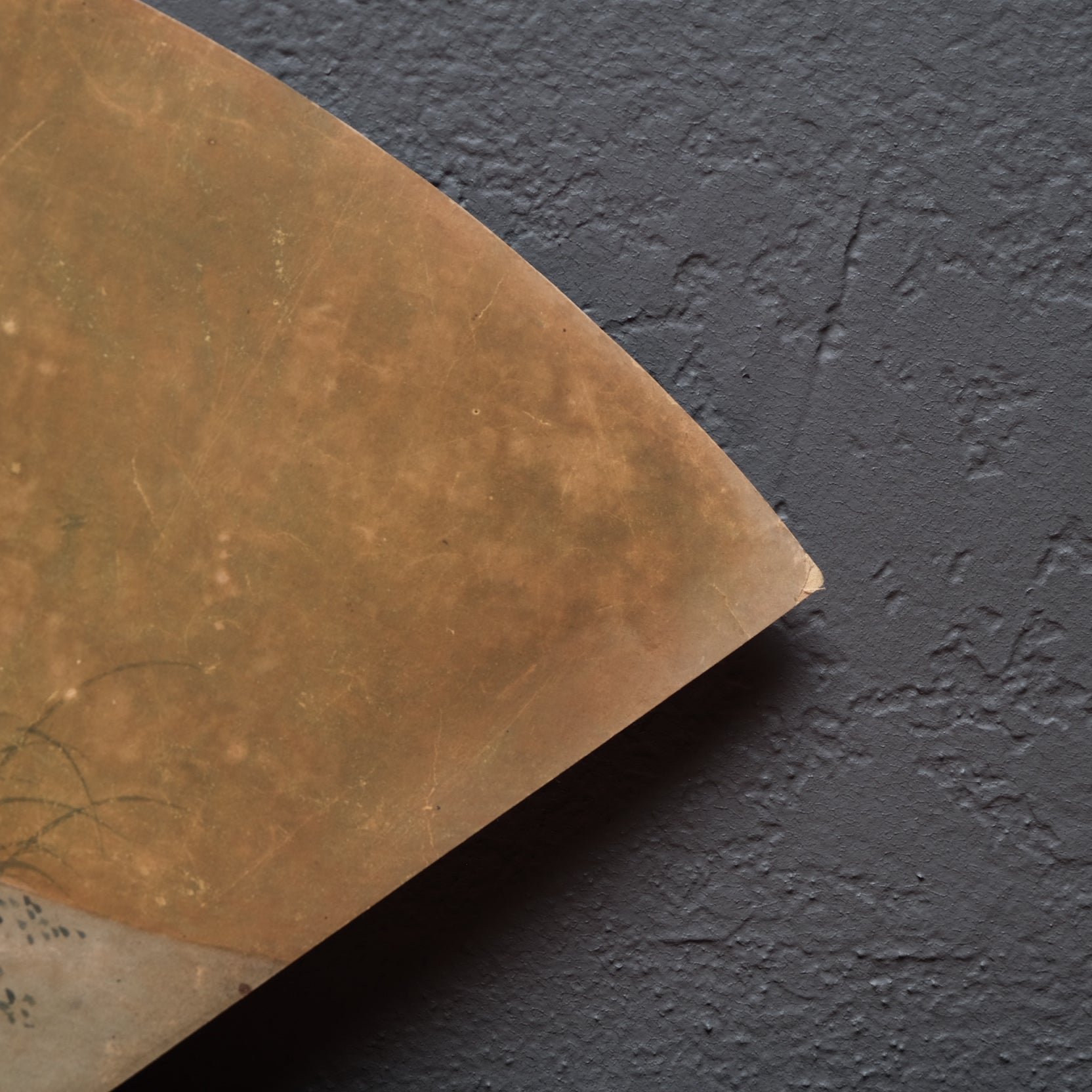 A loose paper fan from the Edo period (1603–1868) featuring a monkey holding a fruit captures the playful spirit and refined humor of the era. Painted on handmade washi, the lively brushwork depicts the monkey as an auspicious symbol of cleverness and agility. It is likely that this fan was made to be mounted on a bamboo or wood frame for use.