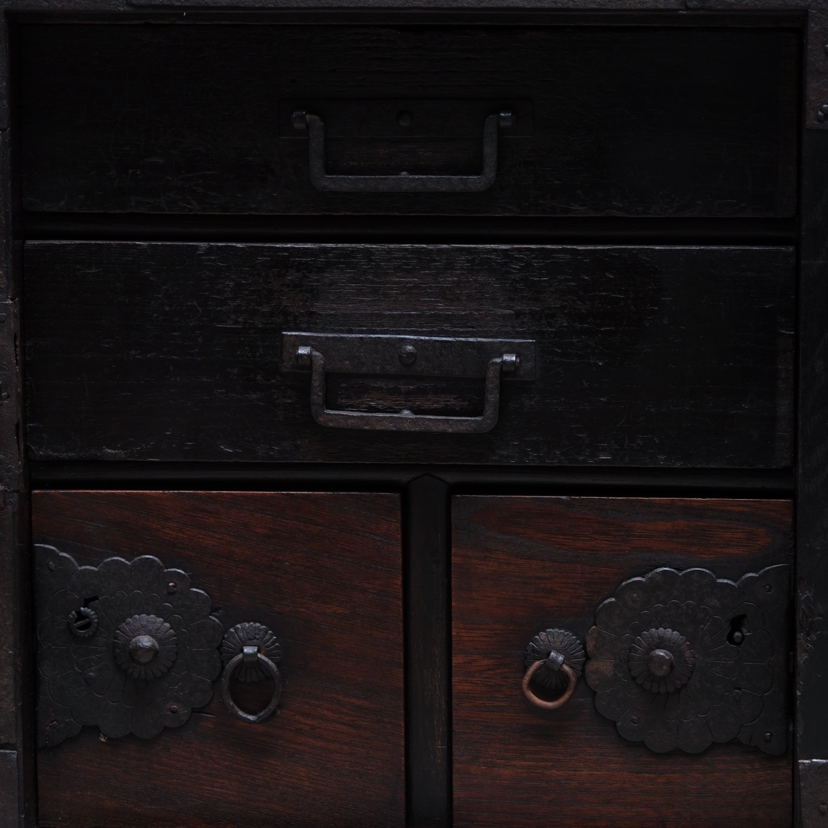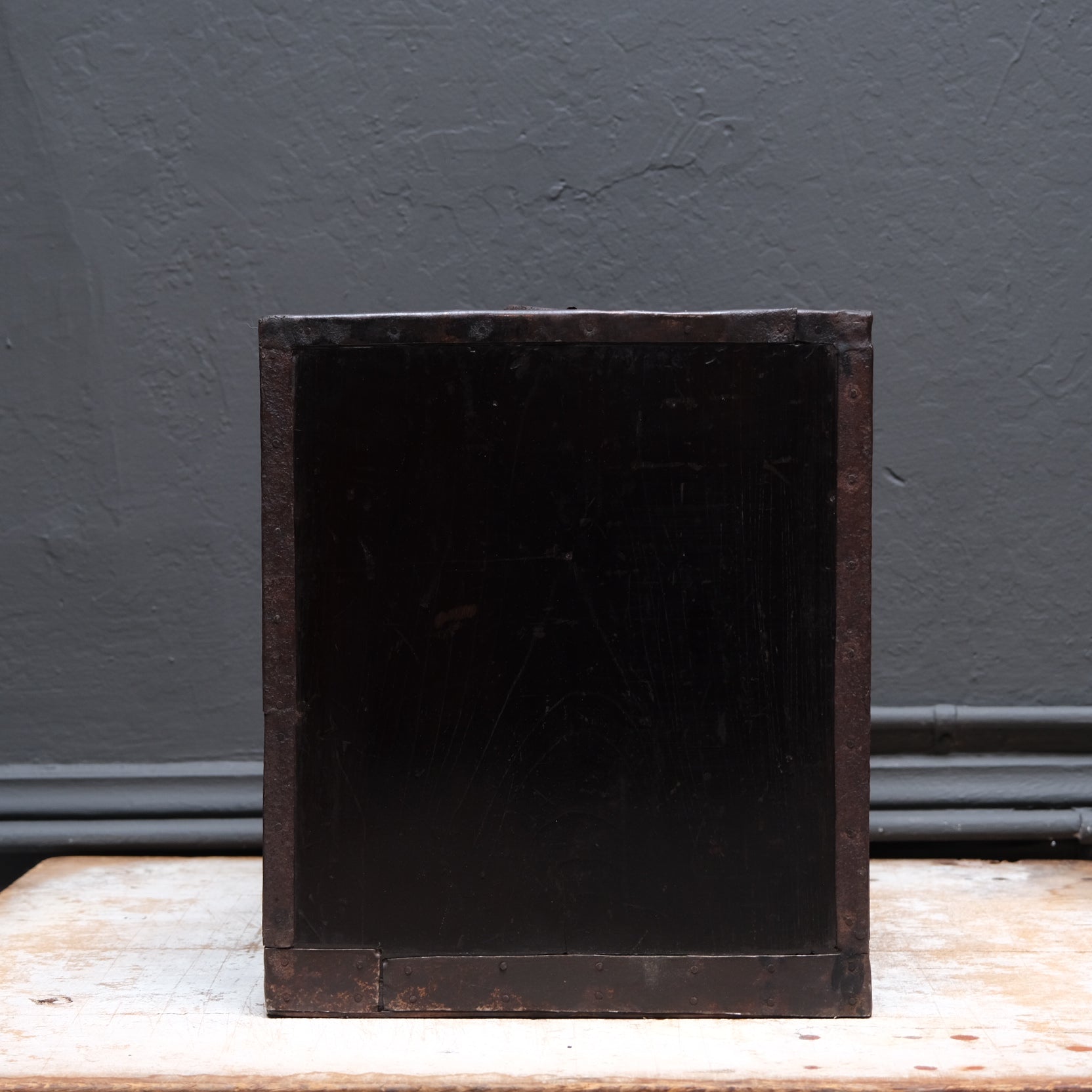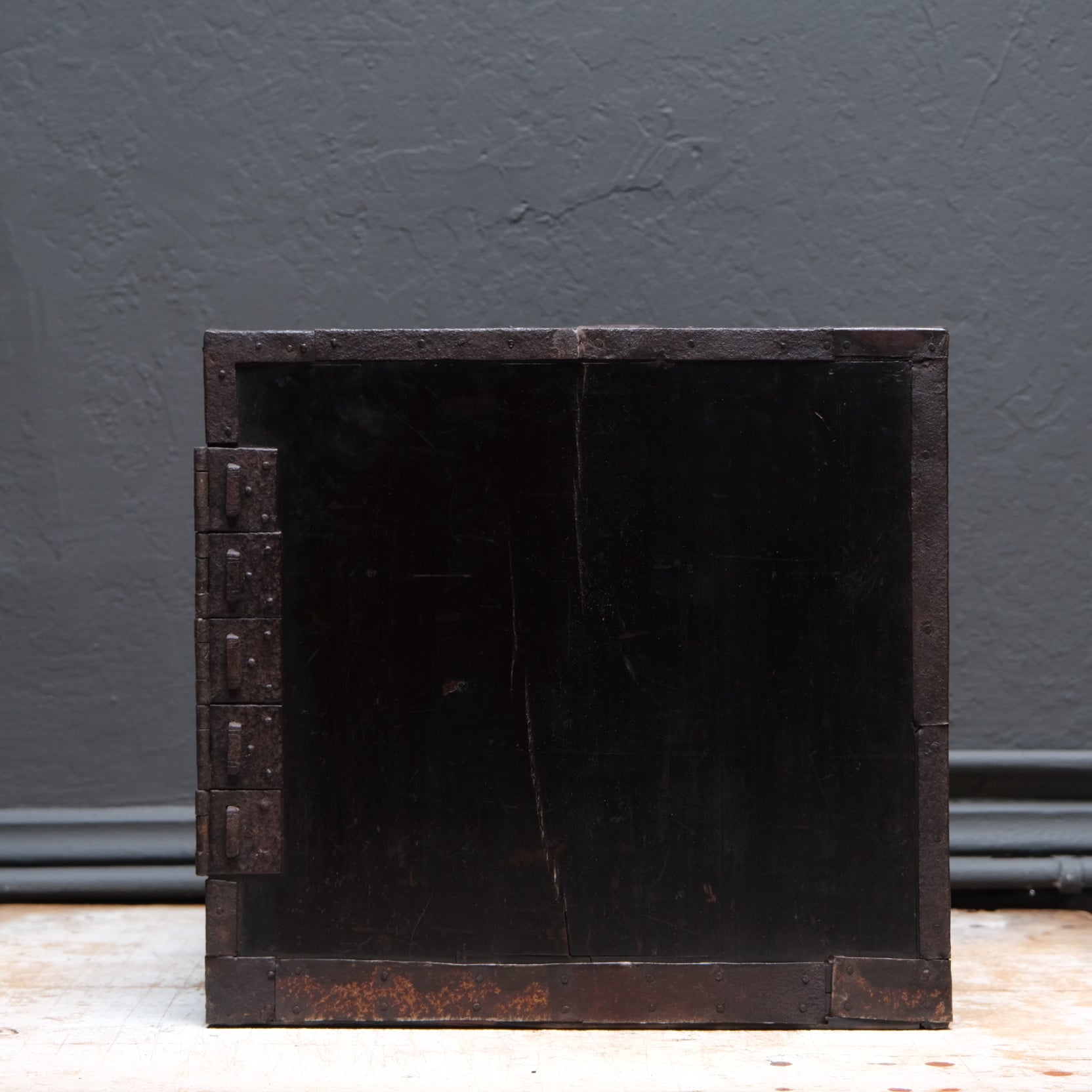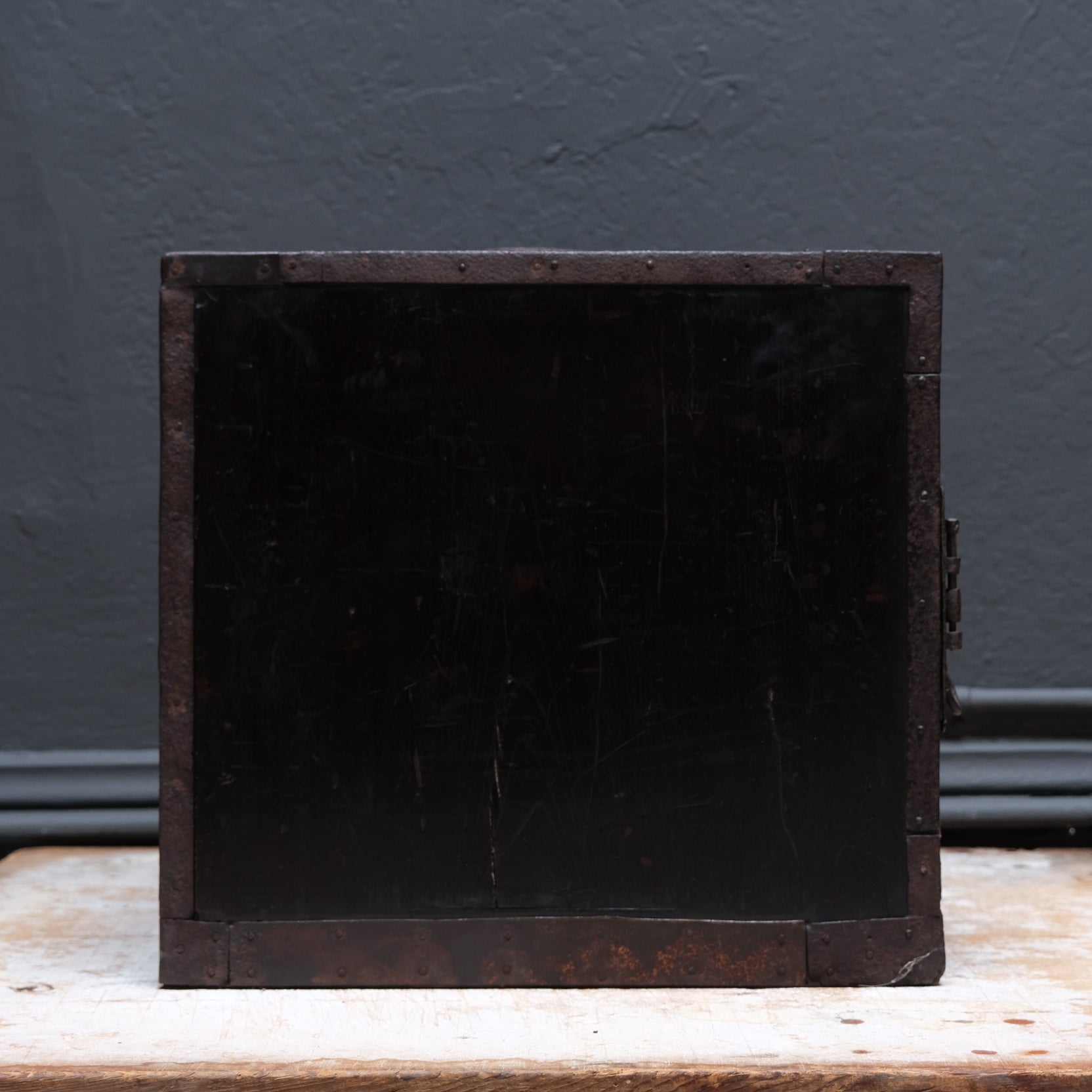 Funa-dansu or ships chest. Funa dansu were captains chests used to store coinage, and shipping papers for small freight ships plying the inland Japanese sea. They were small and constructed of lacquered Japanese elm and almost fireproof and with heavy iron hardware. The example here with heavy, original ironwork. All components in proper working order.